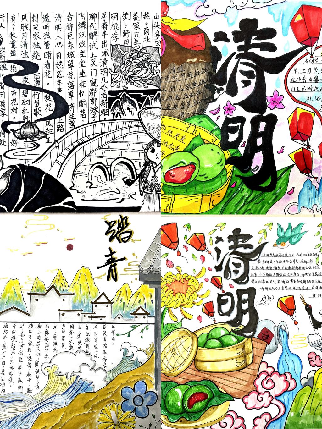 活动中,同学们投入了极大的热情,精心准备,设计制作的手抄报版面美观,内容丰富,图文并茂。他们用自己手中的画笔或写或画地记录下自己所了解的清明风俗或英雄的故事,并以自己的方式解读清明、走近革命烈士。一份份“清明节手抄报”充分表达了同学们对先烈的感恩情怀以及对美好生活的向往和憧憬。