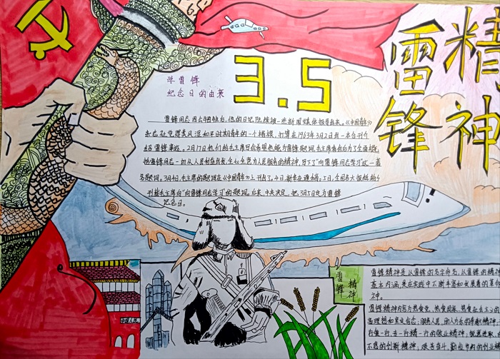 同学们通过各种方式搜索资料,在了解雷锋名言和故事之后,运用自己的聪明才智创作出一张张图案精美、内容丰富的手抄报,用自己的实际行动表达对雷锋的崇高敬意。一幅幅生动的手抄作品,让雷锋精神成为一面面永不褪色的旗帜。