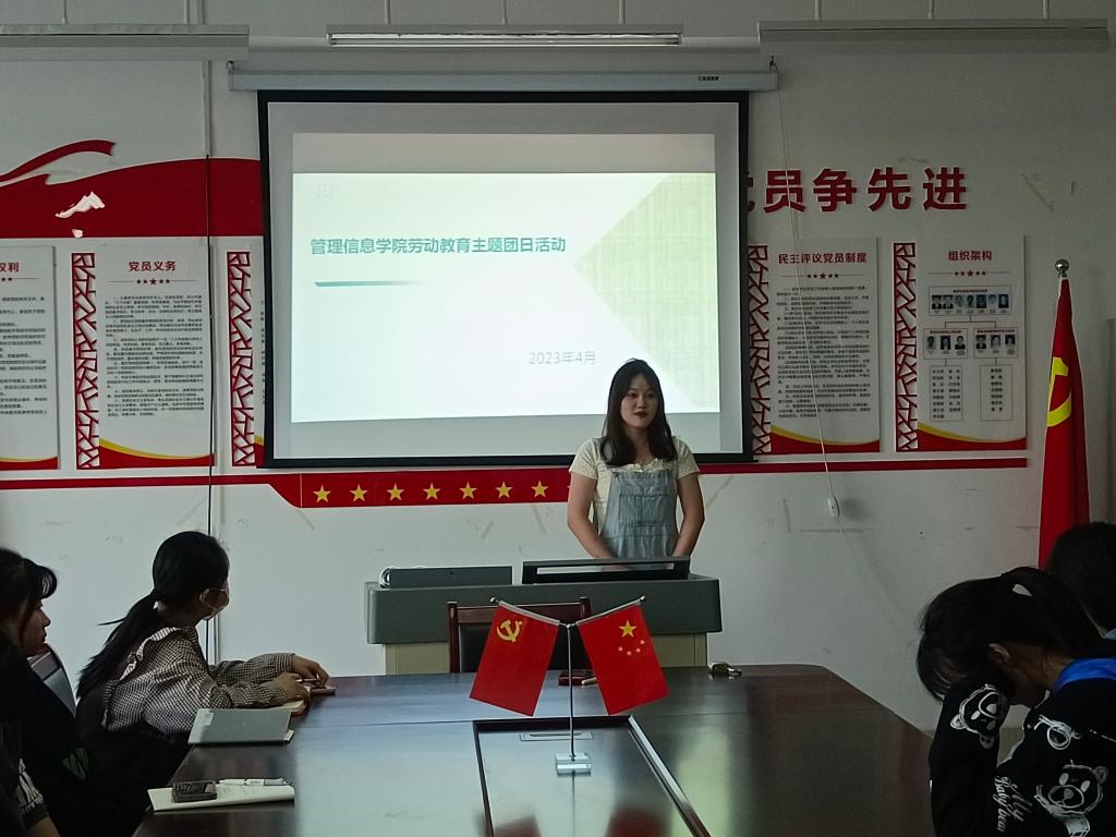 在第133个“国际劳动节来临之际”,为深入贯彻习近平总书记关于教育的重要论述,全面贯彻党的教育方针,培养学生正确劳动价值观和良好的劳动品质,营造劳动光荣的校园文化氛围,4月26日下午,管理与信息学院组织开展了“劳动最光荣”劳动教育主题团日活动。团总支书记张逍主持团日活动。