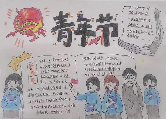 “五四精神 传承有我“主题手抄报