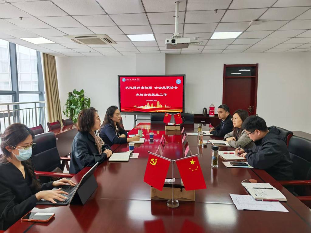 为深化校企协同育人机制,拓宽学生就业创业渠道,精准对接企业用人需求,4月10日,滁州市妇联副主席赵静、滁州市女企业家协会会长夏修琴一行莅临我校,围绕学生就业创业、校企合作等重点工作开展专题交流。会议由校党委委员、副校长孙静主持,招生就业处相关负责人参加会议。