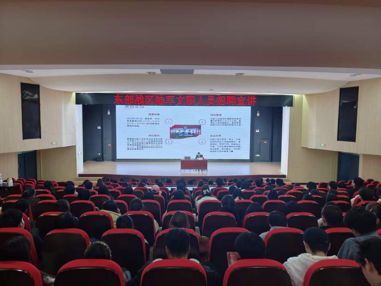 此次军队文职招考宣讲会,是学校精准对接优质就业资源、服务学生就业需求的重要举措,不仅为同学们搭建了权威、高效的政策信息获取平台,更激发了广大青年学子爱国拥军、投身国防的热情,为大家拓宽了职业选择、明晰了就业方向。(文/图:徐晓雨,初审:黄天瑶,复审:沈欢欢,终审:陈默)