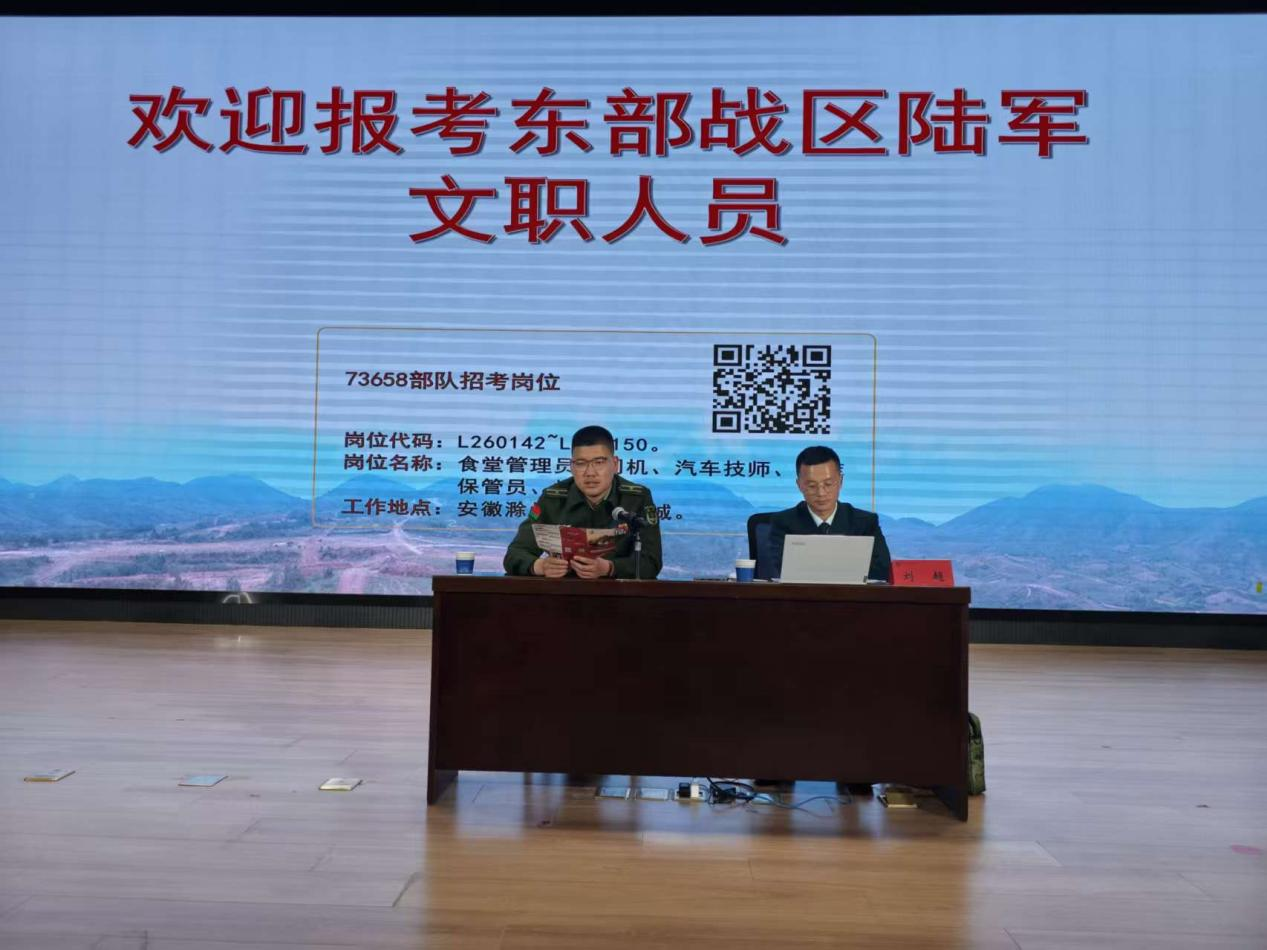 73658部队政治工作部刘干事围绕2026年应征入伍与军队文职招录的最新政策,就报名条件、流程安排、体检政审标准、职业发展路径等关键内容作了系统讲解,强调军队文职作为国防建设的重要力量,为专业人才提供了广阔的发展平台。他鼓励同学们结合自身专业特长与职业规划,积极响应祖国召唤,无论是投身绿色军营还是加入军队文职队伍,都能在国防建设中实现人生价值。