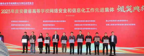 经高校申报、协会初审、专家评审、理事长会议审定等程序,安徽省高等学校网络安全和信息化协会评选出2023年度安徽省高等学校网络安全和信息化工作“先进集体”“先进个人”。会上进行了表彰、颁奖,我校网络信息中心被评为“先进集体”。