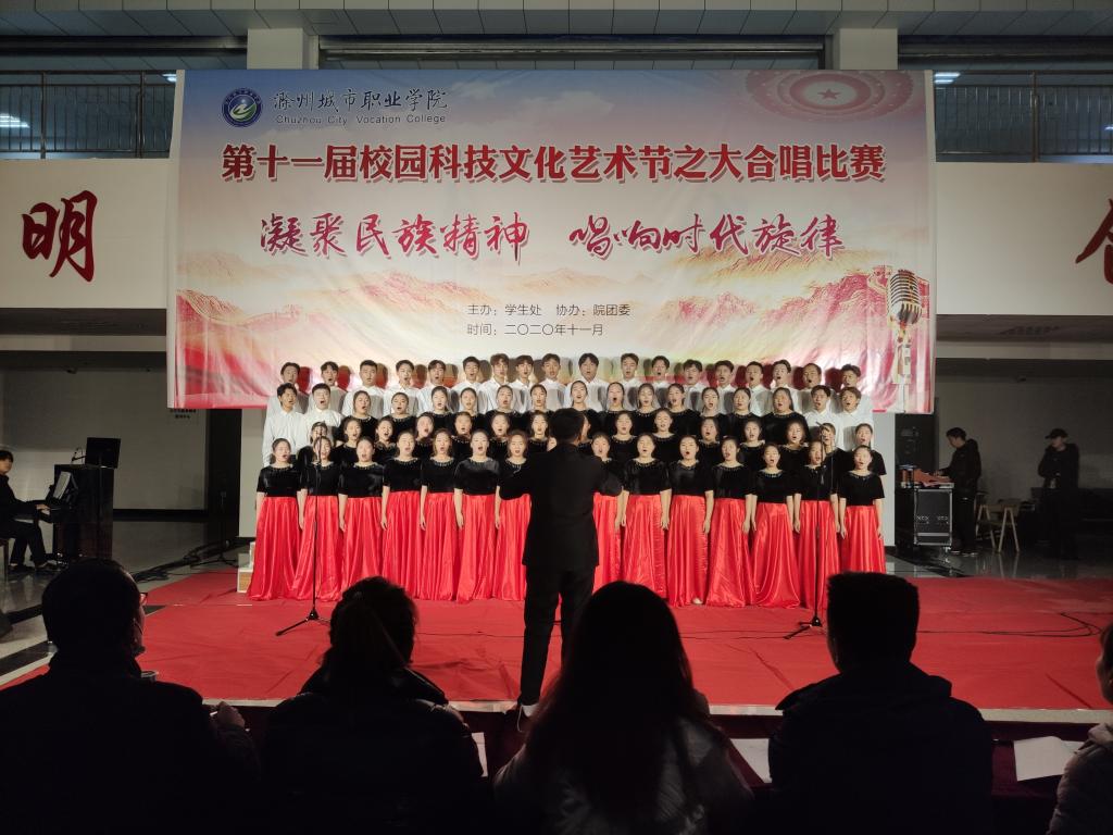 11月25日下午,由学生处主办,院团委协办的第十一届校园科技文化艺术节之“凝聚民族精神,唱响时代旋律” 大合唱比赛在图文中心二楼隆重举行。学生们激情澎湃的合唱,用红色经典传递浓烈的爱国之情!