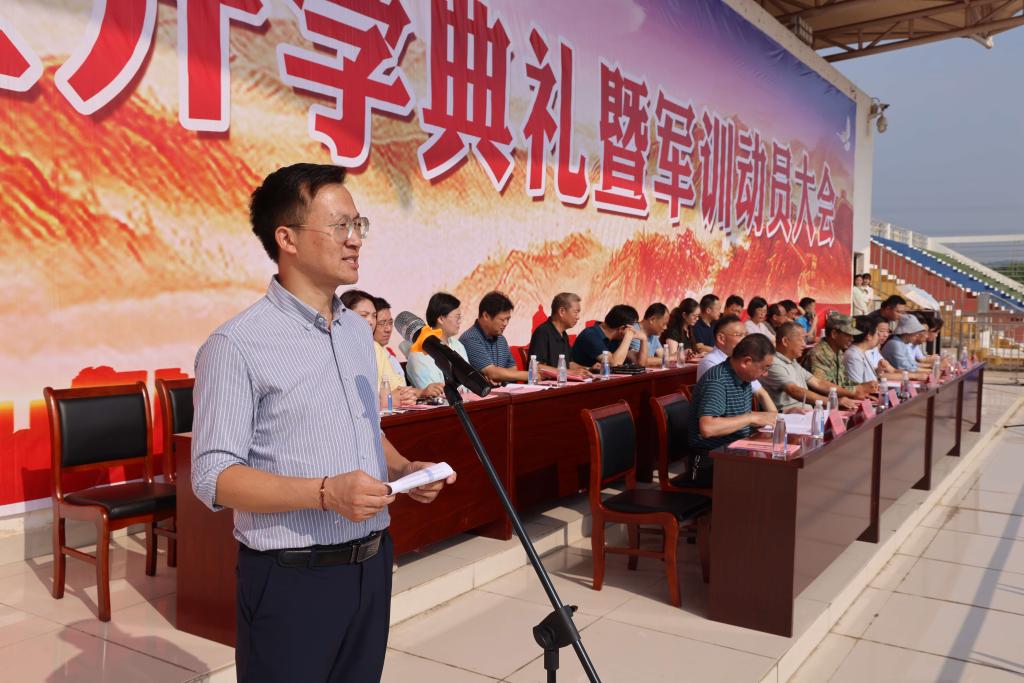 汪上代表学校对2023级新生的到来表示欢迎,向精心培育的父母师长和承担军训任务的中国人民解放军驻滁某部的首长和教官表示衷心的感谢和崇高的敬意。随后,汪上对学校的办学历史、师资队伍、专业建设、办学规模等情况做了全面介绍,并对同学们提出希望:要志存高远,坚定信念,做胸怀“国之大者”的时代新人。大学时代是人生最重要的一个阶段,也是扣好人生“第一粒扣子”的关键时期。希望同学们胸怀“国之大者”,养浩然之气,练过硬本领,努力成为堪当民族复兴重任的有志气、有骨气、有底气的时代新人;要修身立德,精技立业,做追求卓越的工匠人。希望同学们躬耕践行“修身立德、精技立业”校训精神,自觉树立和践行社会主义核心价值观,同时积极主动参加各类职业技能竞赛历练,锤炼精湛技能,争做新时代卓越工匠人;要励心炼志,不畏挑战,做勇毅前行的追梦人。希望同学们在以大学为新起点的人生旅程中,面对成绩不骄傲,面对逆境不气馁,面对挫折不低头,面对责任不逃避,不断树立战胜困难的勇气和心力,不断涵养“不畏浮云遮望眼,乱云飞渡仍从容的”的理性与定力,不断磨砺坚韧意志和气力,不断强健体魄、和谐身心,敢于有梦,勇毅追梦。