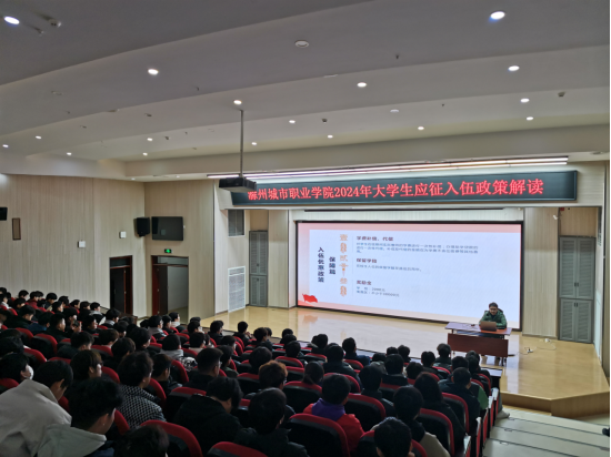 为了进一步做实做细我校大学生征兵工作,提高学生入伍的积极性,12月13日下午,学生处在图文中心四楼报告厅举行了《2024年大学生征兵入伍政策解读》培训会,培训会由学生处俞敏老师主讲,在校毕业班全体男生和有入伍意向的同学及毕业班辅导员(班主任)等300名师生参加了培训会。