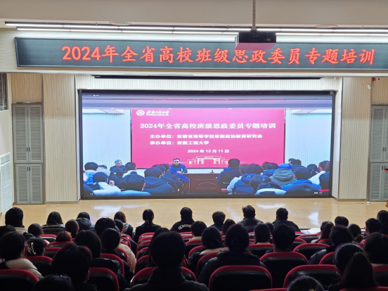 为深入贯彻落实新时代立德树人工程,推进高校思想政治工作改革创新,12月11下午,安徽省高等学校思想政治教育研究会组织开展全省高校班级思政委员专题培训会,我校组织全校216名班级思政委员在图文中心报告厅参加培训。