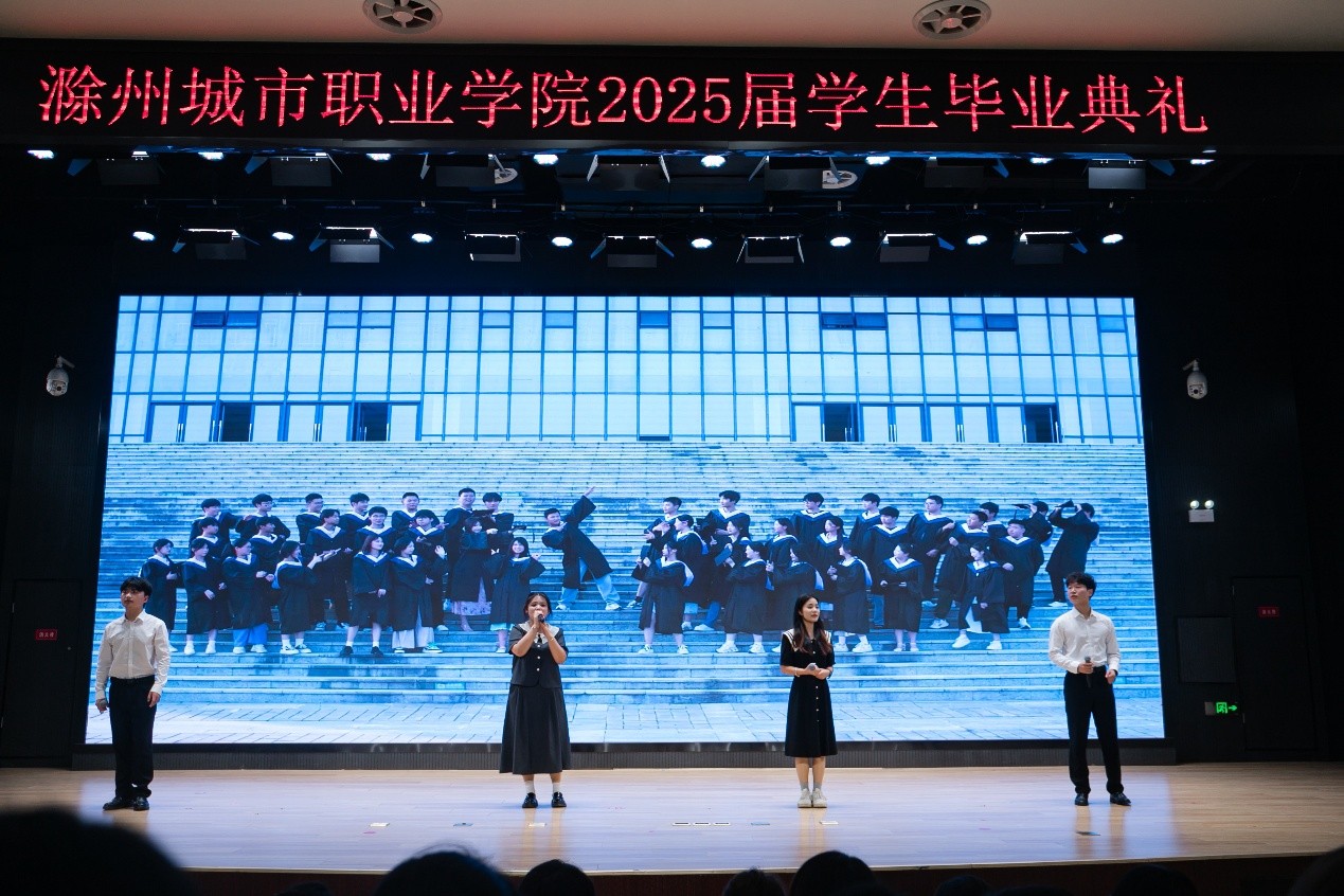 最是情深离别时。在温馨动人的“向母校告别”环节,各学院毕业生代表向母校献上最真挚的感恩与祝福。随后学生代表深情朗诵,回顾了他们在滁城院的青春足迹,畅谈了对未来的憧憬与规划。
