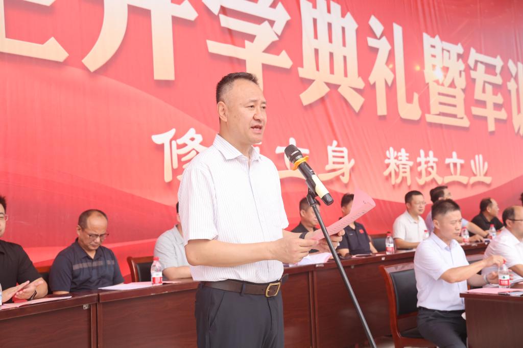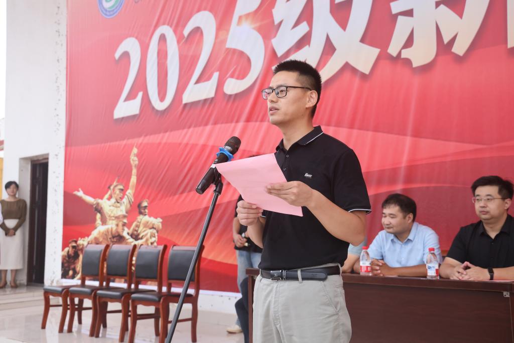 承训部队政治部副主任薛锋代表军训部队官兵讲话。他说,军训是同学们踏入大学校园的一门重要必修课,不仅是国防教育的重要组成部分,更是锤炼意志、塑造品格、挑战自我的宝贵机会。他表示,承训教官团队将科学组训、严格管理,确保训练安全与成效。希望全体同学端正态度,迎接挑战,把自己当成一名真正的“战士”,不怕苦、不怕累,以饱满的热情和高昂的斗志投入训练。