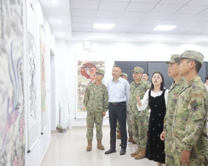 为增进军训教官对学校办学特色与育人理念的深入了解,深化军民协同育人纽带,9月24日上午,校党委书记王燕永借雨天军训间歇期,带队慰问军训官兵,邀请军训官兵走进学校茶艺技能大师工作室、中医康复实训室、生命科学馆和凤画技艺大师工作室,实地感受学校专业建设亮点与文化育人底蕴。