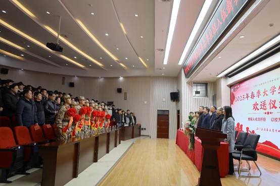 欢送会在庄严的气氛中拉开序幕。学生处副处长田青青宣读了2025年春季入伍学生名单及参军去向,并向入伍学生表示祝贺。