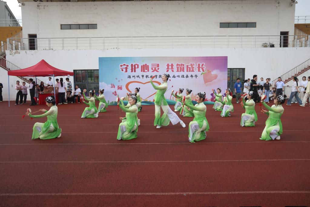 本次活动以“守护心灵,共筑成长”为主题。各学院精彩纷呈的文艺演出拉开了活动序幕,教育学院的凤阳花鼓激昂热烈,医学院的健美操活力四射,护理学院《平凡天使》的手语舞温暖动人,艺术学院的合唱《我相信》充满力量,管理与信息学院的幸福排舞欢快活泼,迅速点燃现场气氛。