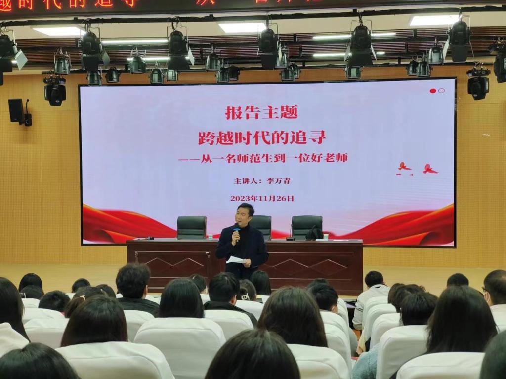 11月26日下午,原凤阳师范学校94届知名校友、南京朝天宫小学校长李万青为教育学院小学教学专业的毕业生们做了一场题为《跨越时代的追寻——从一个师范生到一个好老师》的讲座。这场讲座吸引了该专业的近150名学生及部分教师参加。李万青校长以其丰富的教育经验和对教学的深刻理解为依托,详细阐述了如何从一名师范生成长为一名优秀的小学教师。他分享了自己从师范生到语文教师再到小学校长直到研究型专家的过程,强调了作为一名...
