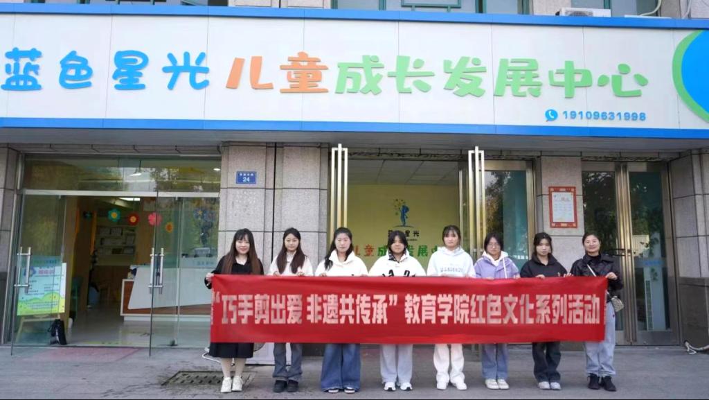 11月21日上午,教育学院五色青春网络文化工作室老师张晶晶、张童心带学生赴蓝天星光儿童成长发展中心开展了“巧手剪出爱 非遗共传承”为主题的非遗剪纸艺术活动,旨在通过传承和弘扬中华优秀传统文化,为特殊儿童提供一个展示自我、体验艺术魅力的平台。活动中,学生向孩子们讲解中国传统文化剪纸的历史和文化背景,然后现场展示了纸张折叠和花纹描绘等剪纸的步骤,激发了孩子们对剪纸艺术的兴趣和好奇心。在学生们的指导下,孩...