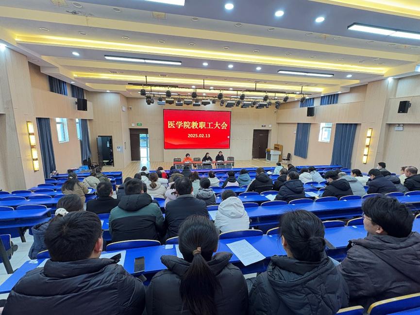为规划和部署新学期各项工作,共同推动医学院的全面发展,2月13日,医学院在报告厅召开了全体教职工大会,会议由医学院院长左晶晶主持,医学院副院长徐旭、医学院党总支副书记俞敏及全体教职工参会。首先,徐旭详细阐述了新学期的教学计划和专业建设要求,要求各教研室要紧密结合行业需求,优化专业结构,提升专业竞争力。同时要求全体教师要不断提高教学水平,创新教学方法,确保教学质量稳步提升。俞敏在会上着重强调了学生管...