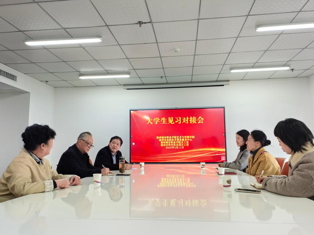 为积极应对就业市场新形势,全力留住驻滁高校优秀人才,为大学生提供多元化见习、实习、就业平台,助力本地经济高速发展。3月11日,滁州城市职业学院艺术与传媒学院、滁州城市职业学院关工委联合滁州市科技创业服务中心、滁州市科技局关工委在滁州市科创中心点会议室召开大学生见习对接会。滁州市科创中心计晴主任与滁州城市学院艺术与传媒学院设计系主任申佳美子围绕大学生见习对接工作、留滁就业、创业等内容展开了广泛且务实...