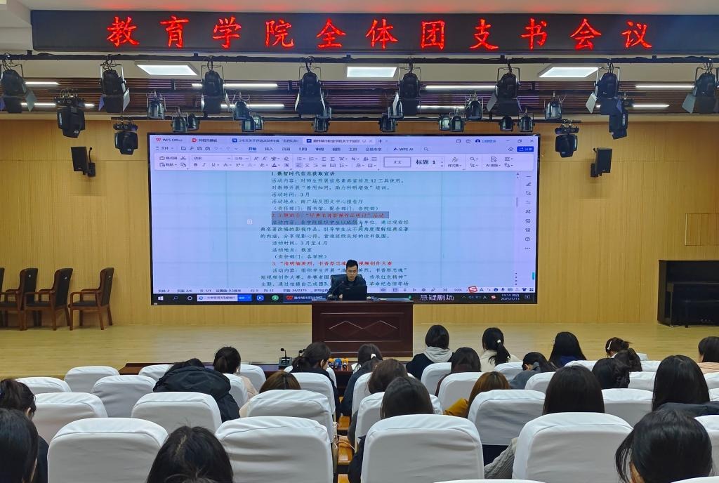 3月14日,教育学院在报告厅召开全体团支书会议,会议由团总支书记黄正顺主持,本次会议总结寒假返家乡社会实践与学雷锋活动开展情况,对读书月、五四红旗团支部评选等近期重点工作进行部署。会上,黄正顺总结寒假返家乡社会实践活动,肯定同学们的积极表现。不少同学投身社区服务、参与文化宣传,用实际行动为家乡发展出力,收获宝贵经验,多个班级的学雷锋活动,同学们清扫校园周边环境,清理镜园广场,走进社区关爱老人等,以...