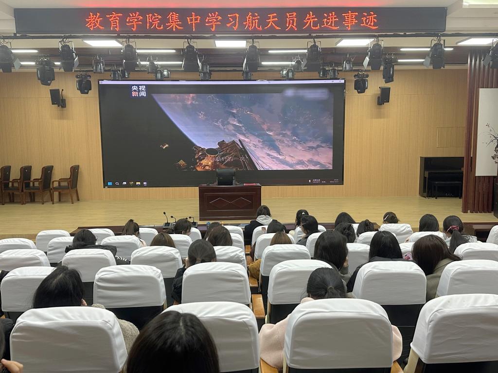 为弘扬新时代航天精神,激发青年学子爱国情怀,3月13至14日,教育学院组织学院各班级认真开展“致敬航天功勋 赓续精神伟力”主题学习活动,深入学习神舟十八号航天员叶光富、李聪、李广苏的先进事迹。此次主题学习活动以班级为单位,同时组织部分学生干部在学院报告厅集中学习,通过观看神舟十八号载人飞行任务相关视频、分享交流感悟等形式展开。活动中,同学们观看了神舟十八号发射升空、在轨工作以及返回地球的精彩影像资料...