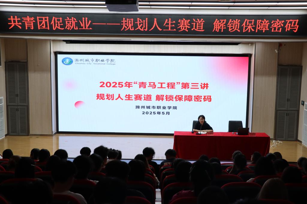 为深入学习贯彻习近平总书记关于促进高质量充分就业的重要指示精神,充分发挥共青团组织育人优势,引导青年学子在创业就业道路上找准方向,顺利迈出职业生涯第一步,5月14日下午,校团委联合滁州市社会保险事业管理中心在图文中心四楼报告厅举办“共青团促就业——规划人生赛道 解锁保障密码”主题宣讲,“”青马工程学员和2023级学生代表参加活动。宣讲会上,滁州市社保中心社会保险登记科科长张杨系统介绍了高校毕业生就业补...