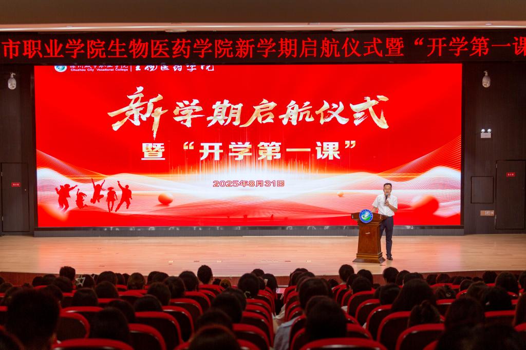 8月31日晚,生物医药学院在管理学院报告厅隆重举行新学期启航仪式,并同步开展“开学第一课”,师生齐聚一堂,共同开启充满希望与挑战的新征程。学院部分管理人员、新入职教师、24级各班级学生及25级药学本科新生近350人参加活动。仪式由学院党总支书记朱启来主持。活动在庄严的国歌声中拉开序幕。全体师生肃立,高唱国歌,昂扬向上的精神面貌充分展现了新时代师生的爱国情怀与奋进姿态。随后,院长徐旭发表热情洋溢的致辞。她...