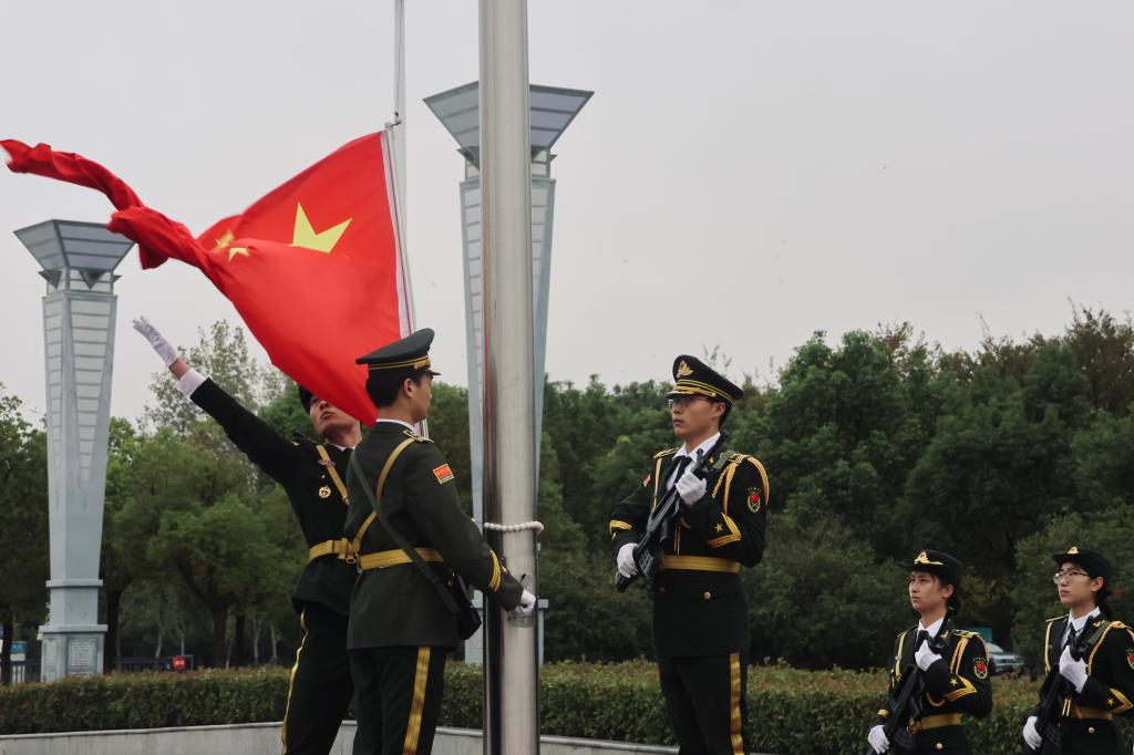 旭日初升,辉映赤子丹心;国歌嘹亮,激荡报国情怀。为庆祝中华人民共和国成立76周年,引领青年学子深刻感悟家国担当,10月13日7时,学校在南广场举行“庆祝中华人民共和国成立76周年 弘扬爱国主义精神”主题升旗仪式。本次仪式由生物医药学院团总支承办,学院党总支书记朱启来、辅导员代表、学生党员及各班级代表近200人参加,以庄严仪式凝聚奋进力量。升旗仪式由学管秘书姚佳妮主持。晨光熹微中,国旗护卫队步伐铿锵、身姿挺拔...