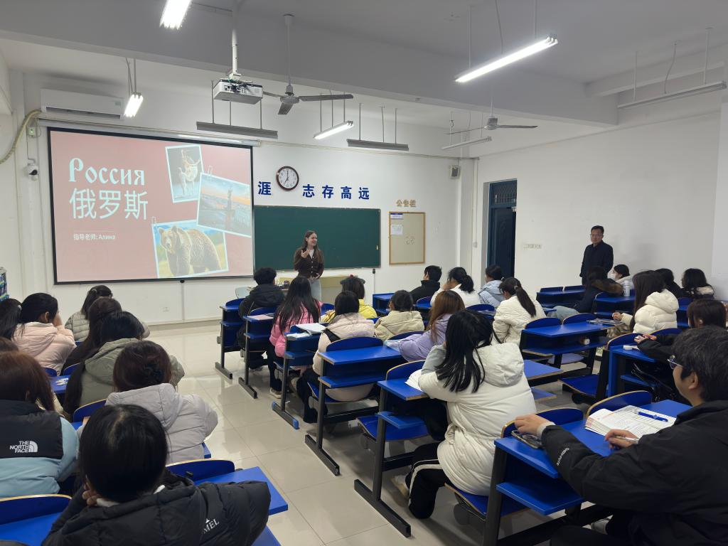 12月3日晚,学院于尚知楼309教室举办俄罗斯文化主题讲座。本次活动由俄语外教阿丽娜(Алина)主讲,吸引了药学专业(中外合作办学)60余名学生参与。讲座从俄罗斯地理、历史与气候背景引入,逐步深入解读其文化内核。阿丽娜老师通过呈现经典芭蕾舞片段、音乐作品以及圣彼得堡、莫斯科等地标志性建筑影像,带领同学们直观感受俄罗斯深厚的艺术积淀与文化底蕴。此外,阿丽娜老师还结合俄罗斯新年传统、特色美食、常用手机软...