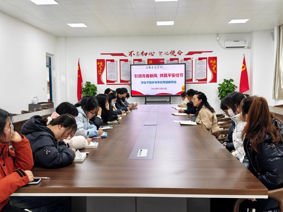 12月23日下午,学院围绕“引领青春新风、共筑平安佳节”主题,组织召开学生干部专题教育会,聚焦关键时期的学生教育管理任务,凝聚共识、压实责任。学院党总支书记朱启来、副书记曹慧敏出席会议,各班级团支书、思政委员及辅导员代表参加会议。会上,曹慧敏结合近期学生工作实际,指出学生干部要切实发挥“宣传员”与“信息员”双重作用。她要求,学生干部要在思想引领中主动发声,在弘扬优秀传统文化、关注日常思想动态、参与...