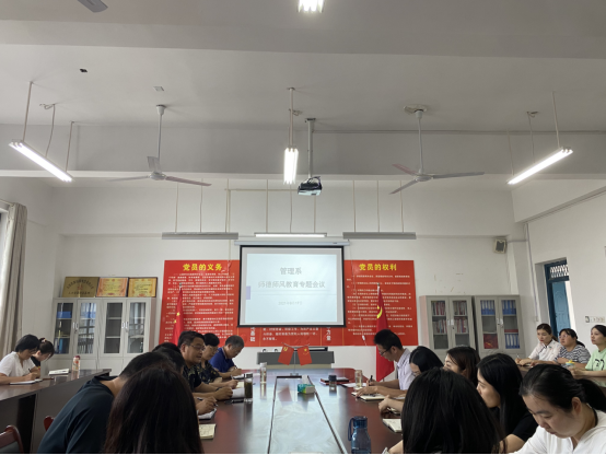 为进一步学习贯彻习近平新时代中国特色社会主义思想,深入落实立德树人根本任务,加强学院师德师风建设,9月17日下午,我管理系在系会议室召开了师德师风专题学习会。学习会由系主任陈素霞主持,全系教师参加会议。会上,管理系党总支书记陈兴旺传达了省委教体工委召开的全省教育系统教师思想政治和师德师风建设推进会会议精神。省委教育工委书记钱桂仑在会上强调,要深入学习贯彻习近平总书记关于师德师风的重要论述,高度重视...