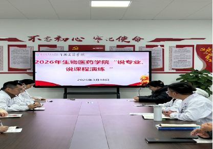 为扎实推进教学能力评估准备工作,进一步夯实专业建设基础、提升课程教学质量,3月18日下午,生物医药学院组织开展“说专业、说课程”专题演练活动。教务处副处长钱珺莅临现场督查指导,本次活动由学院副院长丁时磊主持。药学、医学检验技术等专业带头人依次围绕专业设置、人才培养、教学条件、课程体系与改革、教材管理与应用、师资队伍、实训实习等核心内容,全面汇报专业建设成效与发展思路;药物化学、微生物学等核心课程教...