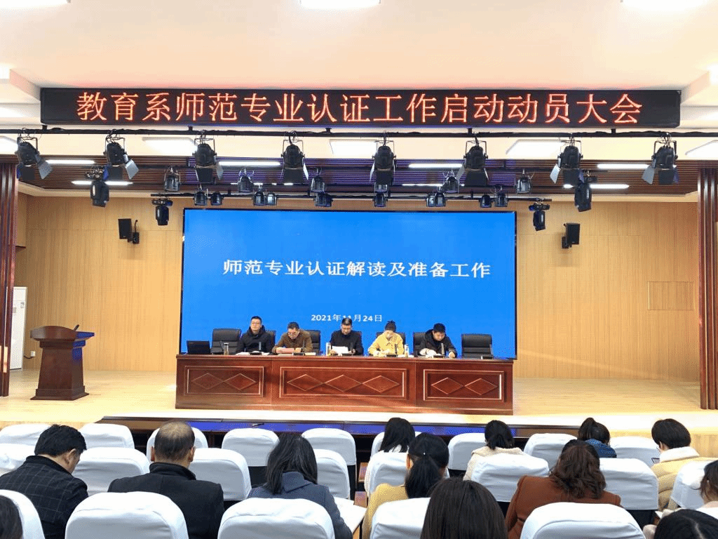 为切实做好师范类专业认证工作,11月24日下午,教育系在C2北1102报告厅召开师范类专业认证工作动员大会。教育系党政班子成员及全体教师参加会议,会议由副主任刘明辉主持。会上,钱庆兵在动员讲话中指出,师范类专业认证对学校提高人才培养质量、促进学校长远发展具有重要意义。他强调,一要统一思想,提高认识,加强学习教育部和安徽省关于师范专业认证的文件精神以及《滁州城市职业学院师范类专业认证工作实施方案》;二要以...