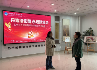 为了庆祝党的二十大胜利召开,2022年11月20日在C4音乐楼,艺术与传媒学院党总支举办“丹青绘宏图,永远跟党走”师生书画设计作品展。展览期间,校党委书记张志华亲临现场参观画展并指导工作。 本次师生书画作品展主题鲜明,风格多样,意境深远,共展出50余件师生精品佳作,其中教师作品10余件、学生作品40余件,涵盖了设计、书法、凤画、国画、素描、水粉、文创等多种艺术类型。本次活动旨在积极引导大学生践行社会主义核心价...