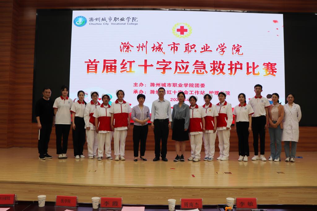 安全是健康的重要保障,应急救护是人们在生死边缘的一根救命稻草。为增强学生安全防范意识,提高应对校园安全事故的应急救护能力,在意外伤害及突发事件发生时能及时正确地自救互救,最大限度地减少伤害、挽救生命,4月20日下午,学校在校第二学术报告厅举办首届红十字应急救护比赛。本次比赛诚邀滁州市红十字会赈灾救护和事业发展科科长周南杰,中国红十字会注册应急救护师、琅琊区丰山医院中心副主任李霞;中国红十字会注册应...
