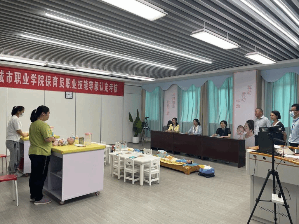 根据国家相关职业技能认定操作规程要求,5月28日,教育学院对46名社会人员开展保育员职业技能认定考试,顺利完成初级及中级两个等级的认定工作。本次认定工作分为理论笔试与技能实操考核两个部分,校党委委员施向阳、教育学院党总支书记钱庆兵、继续教育学院院长许梅等参加巡考。保育是幼儿园工作中不可缺少的重要组成部分,为了更好的提高学员的理论与实际操作技能等综合能力,使保育员工作细致化、规范化、常规化,真正做到“...