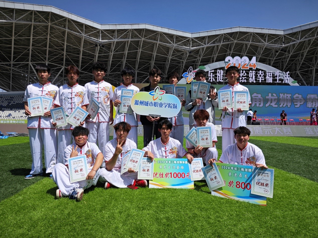 4月18日,2024年长三角龙狮争霸赛结束了为期两天的精彩对决。在校党委委员、副校长吴惠珍的带领下。我校龘龘舞龙社与江浙皖三省高职、本科和社会剧团等数十只队伍同台竞技,发挥出色,最终取得竞速舞龙项目铜牌的好成绩!祝贺!赛事现场,龙腾狮跃,精彩纷呈。比赛中,我校舞龙队不惧压力,奋勇拼搏,精彩地呈现了各种高难度动作,最终获得竞速舞龙铜牌和自选套路优胜奖,并受邀参加第十届天长市茉莉花全民健身节开幕式。刚柔并...