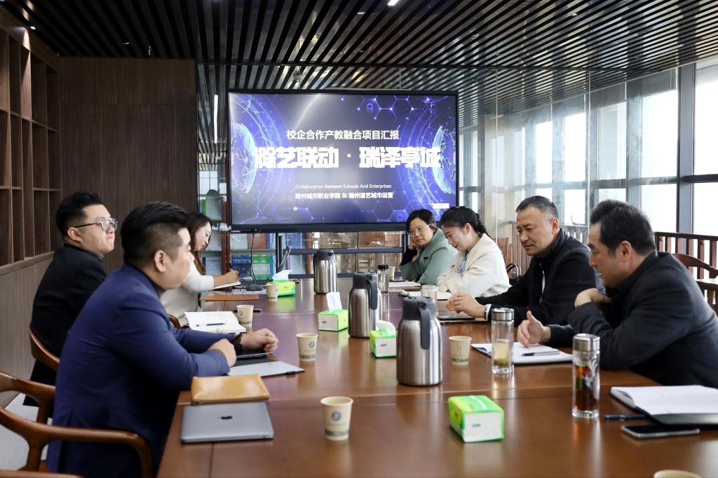 11月21日,滁州道艺城市运营管理有限公司负责人周峰一行来到我校,双方就校企合作、产教融合等项目举行座谈会。校党委书记王燕永出席会议,艺术与传媒学院党总支书记杨孝富,党总支副书记、院长钱中宝,美术系主任刘晓玲,教育学院院长徐立娟,宣传统战部副部长秦海娇等参加座谈。会上,王燕永详细介绍了艺术与传媒学院、教育学院的学科与专业建设、教育教学等基本情况。周峰介绍了公司发展历程、业务情况,叶扬重点介绍“滁艺...