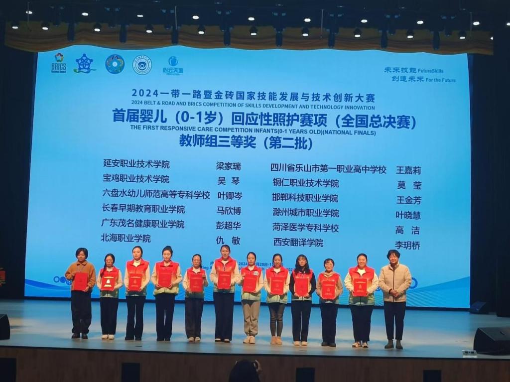 近日,2024年一带一路暨金砖国家技能发展与技术创新大赛隆重开赛,我校师生在首届婴儿(0-1岁)回应性照护赛项(全国总决赛)和第二届幼儿照护职业技能赛项(全国总决赛)中以出色的表现,取得可喜的成绩。11月28日至12月1日,在内蒙古兴安职业技术学院举办的2024年一带一路暨金砖国家技能发展与技术创新大赛首届婴儿(0-1岁)回应性照护赛项(全国总决赛)中,我校教育学院早期教育专业教师叶晓慧荣获教师组三等奖,学生张鑫鑫...