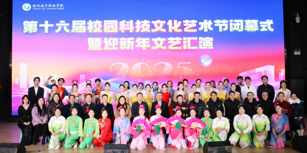 岁聿云暮,新元肇启。12月26日,滁州城市职业学院第十六届校园科技文化艺术节闭幕式暨迎新年文艺汇演在润德楼四楼报告厅顺利举行。校领导班子成员,各教学院部、职能部门负责同志,优秀指导老师代表及300余名学生欢聚一堂共赏文艺盛宴,同迎崭新之年。活动通过网络“云端”同步直播,观看量和点赞数近万次,引起青年学子热烈反响。本次汇演以“奋楫扬帆启新程,挺膺担当向未来”为主题,通过歌曲、朗诵、舞蹈、器乐歌剧、经典诵...