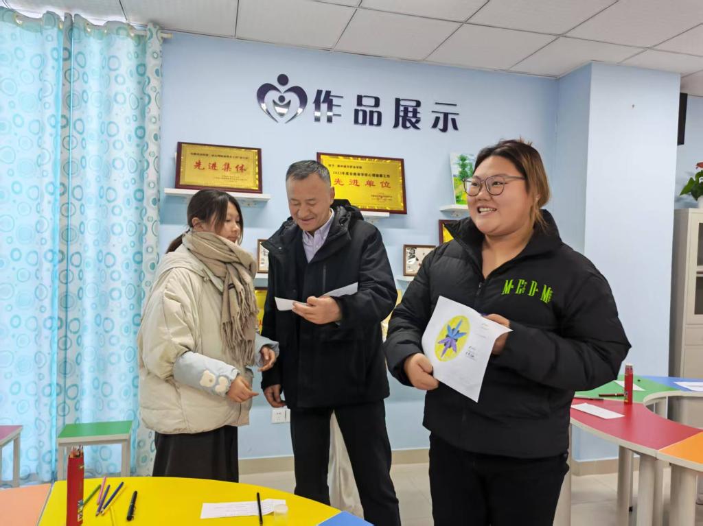 为创新心理健康教育形式,助力学生自我觉察与情绪管理能力提升,12月25日,我校心理协会在心理中心团体辅导室成功开展“色彩曼陀罗——情绪花园”主题团体心理辅导活动。校党委书记王燕永,校党委委员、学生处处长杨如江,校团委书记陈婷婷亲临现场观摩指导,心理协会20名同学参与。活动围绕“情绪探索与表达”展开,包含“破冰启心扉—认知明情绪—创作绘心语—分享悟成长”四大环节。同学们在“抢水瓶”互动游戏中拉近距离,...