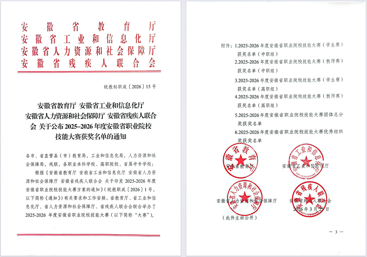 2025-2026年度安徽省职业院校技能大赛(高职组)获奖名单(学生赛) |