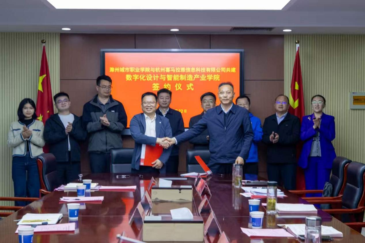 4月22日下午,滁州城市职业学院与杭州喜马拉雅信息科技有限公司共建数字化设计与智能制造产业学院签约仪式,在学校图文中心第四会议室隆重举行。校企双方深化产教融合、协同育人,共同开启职业教育高质量发展新篇章。