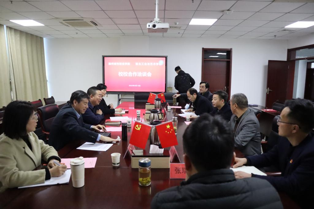 3月13日下午,淮北工业与艺术学校党委书记胡远文、校长李军一行4人来我校,就设置高职专业学院试点等方面工作进行交流洽谈。校党委副书记、校长汪上参加会见。党委委员施向阳,教务处、艺术与传媒学院、招生就业处等院部负责人参加活动。汪上代表学校对胡远文书记、李军校长一行的到来表示热烈欢迎。施向阳详细介绍了我校办学历史与办学定位、专业设置与办学规模、产教融合与校企合作等情况。李军介绍了淮北工业与艺术学校的基...